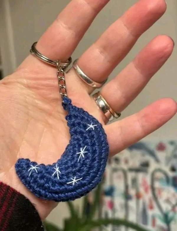 Corcheted Moon Keychain