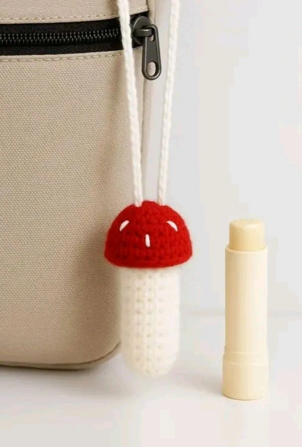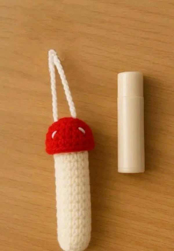 Corcheted Mushroom Shaped Lipbalm Holder Keychain