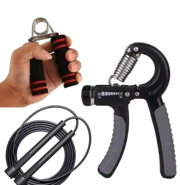 IAMALOT Foam V Shape Hand Grip, 5KG to 60KG Adjustable Hand Gripper & Skipping Rope with Speed Rope for Men & Women, Multi, PVC & Metal, Home & Gym Use