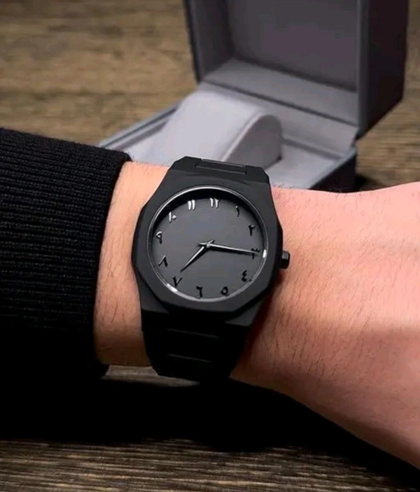 Men's Luxury Aura Black Arabic Numeral Watch - Matte Black Analog Wristwatch with Eastern Arabic Dial -Modern Minimalist Waterproof Timepiece, Black Watch for Men