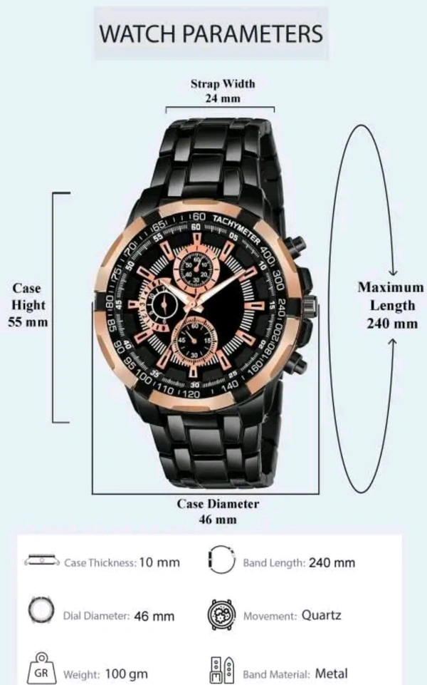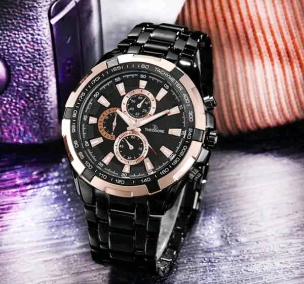 THEODORE| Men Analog Black Heavy Metal Chain Watch